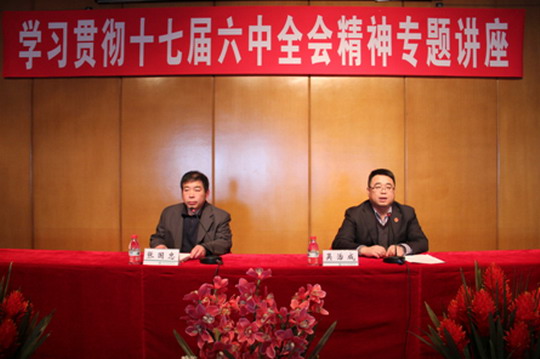 张教授从什么是文化、中国文化的七个特点、中国社会主义文化的精髓——社会主义核心价值体系等方面对十七届六中全会的决定精神进行了解读。张教授的讲座见解独特,旁征博引,论证严密,阐述深刻,对我们更好的领会十七届六中全会精神给予了帮助和启示。