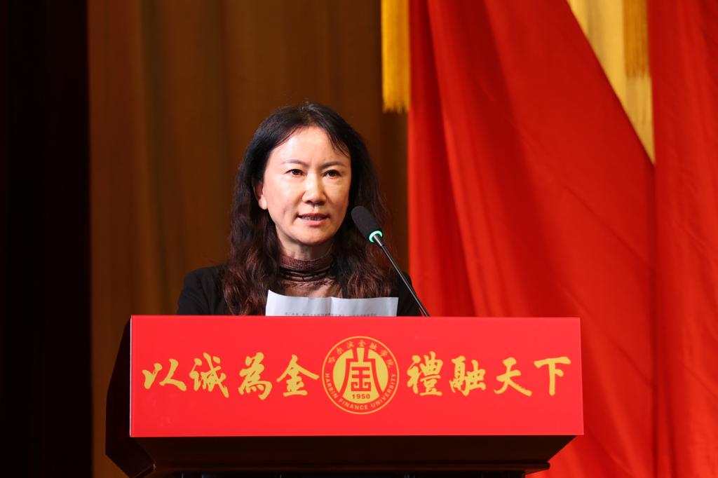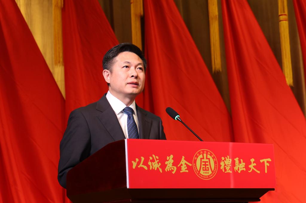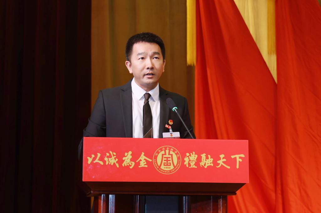 陈海平代表共青团黑龙江省委在大会上讲话。他表示,近年来,在学校党委和团省委的坚强领导下,哈尔滨金融学院团学组织秉承“以诚为金 礼融天下”的校训精神,培育了“文明诚信、笃学致用”的优良学风,打造了“五能三好”金融从业技能培训体系。他对我校新时代共青团工作提出三点希望:一要坚持为党育人,把牢政治方向,要坚持不懈用习近平新时代中国特色社会主义思想凝心铸魂,要加强团员和青年教育引领,打造便于青年学习的载体,引领广大团员青年不断增进对党的创新理论的政治认同、思想认同、理论认同、情感认同。二要紧贴金融强国,主动担当作为,引导广大团员青年在中国式现代化建设中挺膺担当,练就过硬本领,为助力龙江全面振兴全方位振兴作出贡献。三要勇于自我革命,全面从严治团,切实夯实基层团组织基础,激发基层活力,全面从严管团治团,持续巩固和深化高校学生会改革成果,在全方位、高标准锻造中不断焕发出团学组织昂扬向上的时代风貌。
