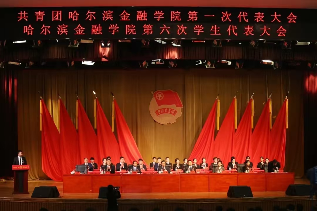 10月26日,共青团哈尔滨金融学院第一次代表大会、哈尔滨金融学院第六次学生代表大会在金苑会堂成功召开。