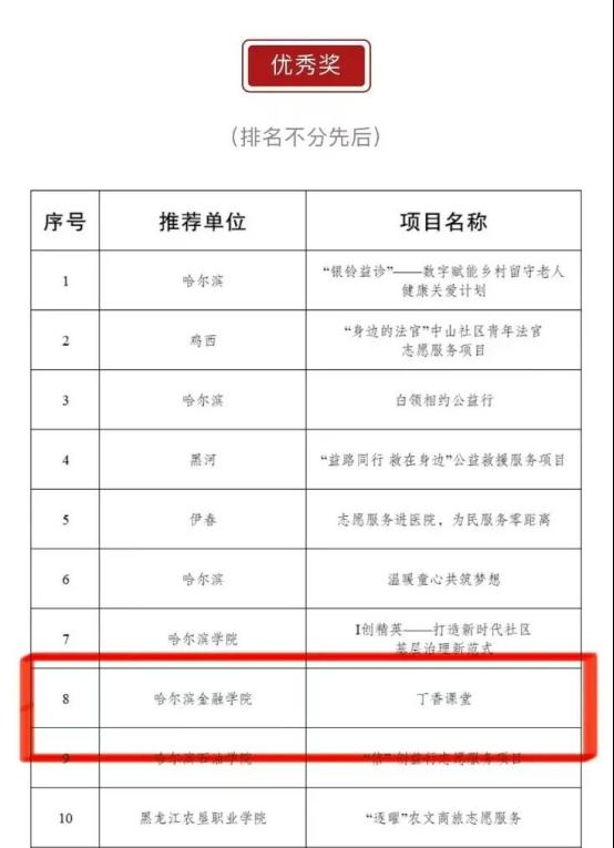 近日,由共青团黑龙江省委员会、黑龙江省青年志愿者协会主办的第八届黑龙江省青年志愿服务项目大赛暨2025年志愿服务交流会在哈尔滨圆满落幕。经过激烈角逐,我校的志愿服务项目脱颖而出,凭借鲜明特色与扎实成效斩获佳绩,为校争光!