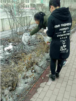 与此同时,第二志愿服务小分队周末组织志愿者开展了以“洁净美丽校园,营造良好学习环境”的校园捡拾垃圾活动。同学们分工明确,相继在实验楼、第二体育场等场所展开垃圾清扫活动,不放过任何一个死角。虽然天气寒冷,看到焕然一新的整洁环境,同学们难掩心中的欣慰与成就感。
