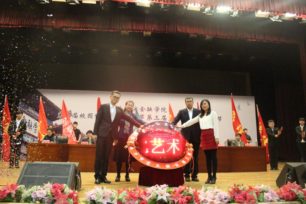 开幕式上,院团委副书记顾广强宣读了《第八届科技文化艺术节活动方案》和《第三届社团文化节活动方案》。会计系团总支书记白永雪代表承办单位发言,表示会积极配合做好“两节”各项活动的宣传、动员、培训和参赛等工作。金融系参赛学生代表尹昱晖向大家分享了自己参加艺术节的经历与感悟,并建议同学们积极参与各项活动,要敢于尝试、敢于创新、敢于拼搏,充分利用课余时间锻炼和提高自己。随后,副院长徐春香为本次开幕式致辞,并对举办好“两节”提出三点希望。一是希望各单位、各部门要积极配合、大力支持本届艺术节和社团文化节的各项活动,为活动的顺利举办提供强有力的支持和保障;二是希望各系要高度重视,加强领导,精心组织,注重宣传,做好活动的组织和参赛工作;三是希望各社团和全体同学以高涨的热情和主人翁精神投入到“两节”的活动中去,尽情释放青春与活力。她指出,科技文化艺术节和社团文化节是我院探索构建“金融特色”校园文化的有益尝试和实践,我们要以“两节”为平台,以更加昂扬的精神状态和优异的成绩迎接党的十九大的胜利召开。最后,副院长徐春香、张铁军和师生代表共同启动水晶球。至此,第八届科技文化艺术节和第三届社团文化节正式拉开大幕。