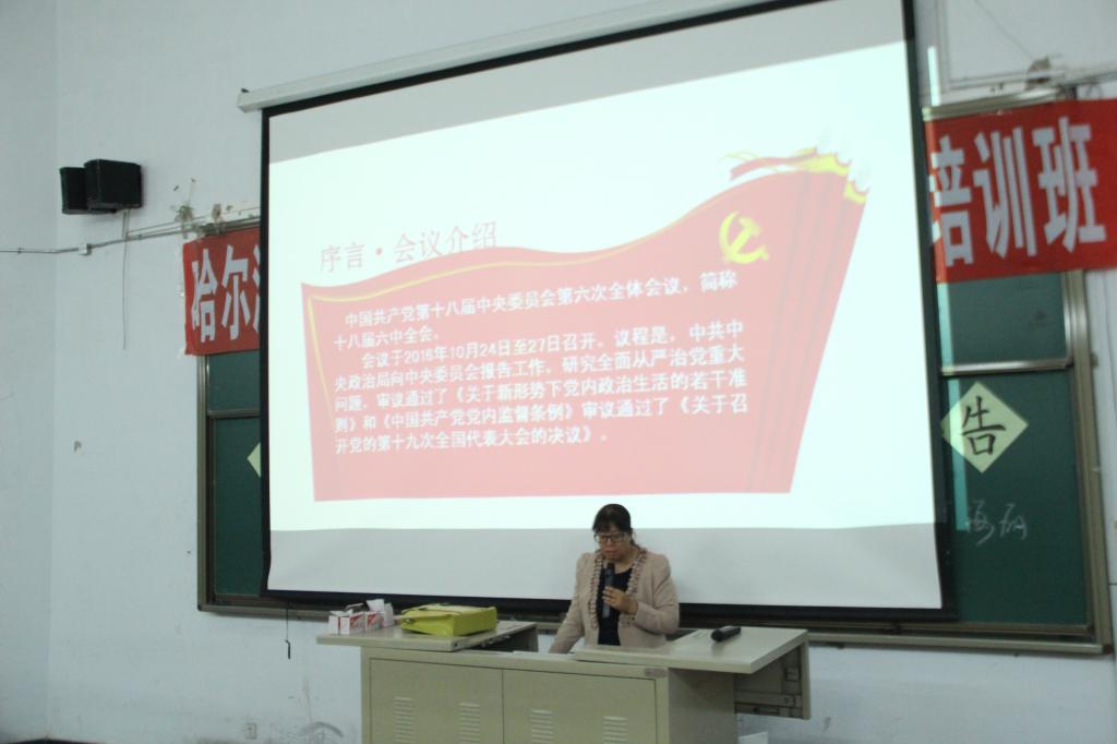 按照第五期团校暨“青马工程”大学生骨干培训班培训计划的安排,5月10日晚,我院思政部副教授丁海丽老师在实验楼501教室为同学们作了题为“解读十八届六中全会精神”的专题讲座。